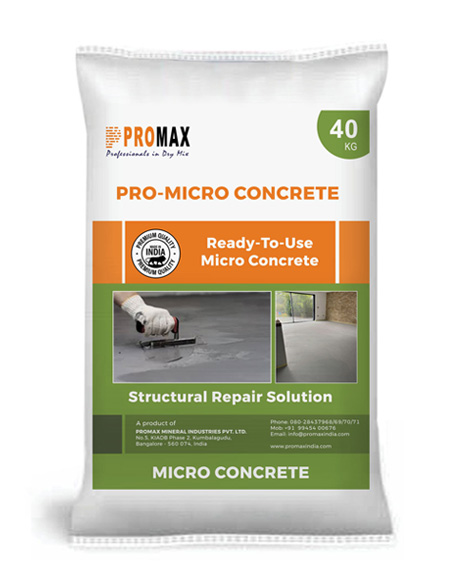 PRO-Micro Concrete is typically used for repairing and restoring damaged concrete structures where conventional concrete placement is difficult or impractical. It is ideal for situations that demand high flowability, self-compaction, and excellent strength development without the need for vibration. This makes it especially suitable for repairing RCC beams, columns, slabs, and other structural elements with restricted access. Additionally, it is used for jacketing of columns, encasement of structural steel, and filling of voids or cavities in precast elements. Its shrinkage-compensated formulation ensures dimensional stability and durability, making it a preferred solution for precision structural repairs and rehabilitation work in both industrial and residential projects.