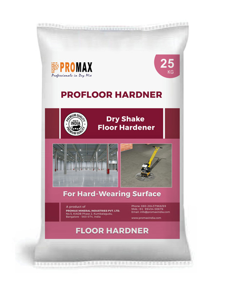 Profloor Hardner is a pre mixed & bagged blend of cements, special aggregates & additives, which when power floated onto new concrete gives a smooth, dense, hard wearing surface, that substantially increases abrasion resistance over normal concrete. Profloor Hardner is non-metallic, free from chlorides and forms a strong monolithic bond with the parent concrete.